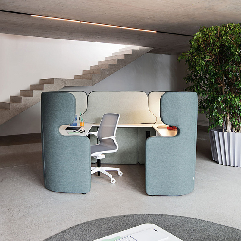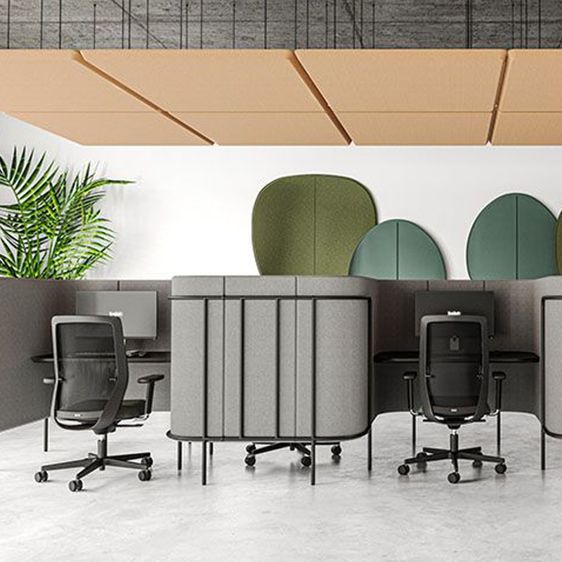 | Akoestische werkplek | Werkplek met akoestische panelen en schermen |
